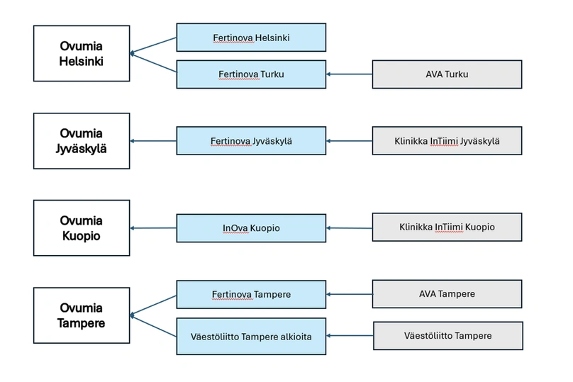 Vuosien kuluessa jotkut hedelmöityshoitoklinikoista ovat yhdistyneet toisten klinikoiden kanssa ja nimikin on saattanut muuttua. Ovumia klinikoiden historian löydät alla olevasta kaaviosta.
